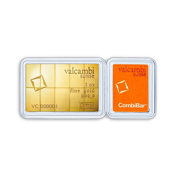 Le CombiBar Valcambi 10×1/10 once est une solution idéale pour les investisseurs recherchant flexibilité et sécurité. Ce lingot divisible de 1 once (31,1035 g) est composé de 10 segments de 1/10 once chacun, permettant une gestion simplifiée de votre investissement en or.