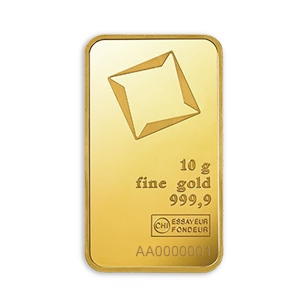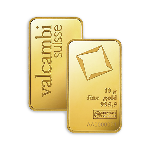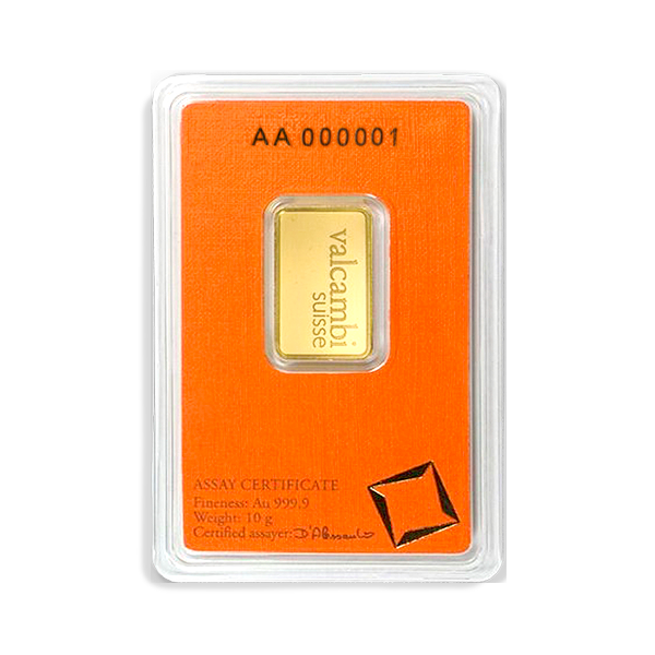 Lingot d’or Valcambi 10 g – Or pur 999,9 ‰, Certicard inclus